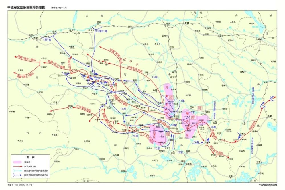(中原軍區(qū)部隊(duì)突圍形勢圖 來源:中國地圖出版集團(tuán))